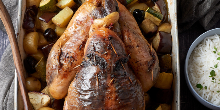 Rôti de Poularde. Issu de la Poularde fermière prête à cuire porteuse du Label Rouge et de l’IGP Gers. C’est la petite sœur du chapon. Cette jeune poule n’ayant jamais pondu est issue d’une souche de chair rustique à croissance lente, afin qu’elle grossisse progressivement pour développer ses couches musculaires.